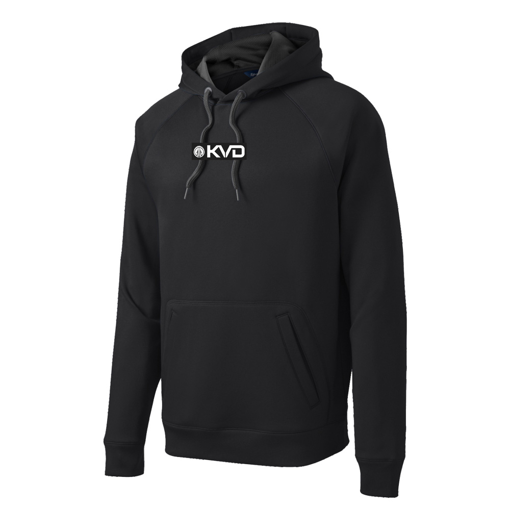 Performance heavy duty black hooded sweatshirt. Durable KVD, PVC patch. breathable fishing shirt. Looks great early mornings on the water, or grilling out on the weekends. Custom “KVD” quality PVC patch. Extra detailed hand pouch, double stitched and high quality, thick warm feel durability.